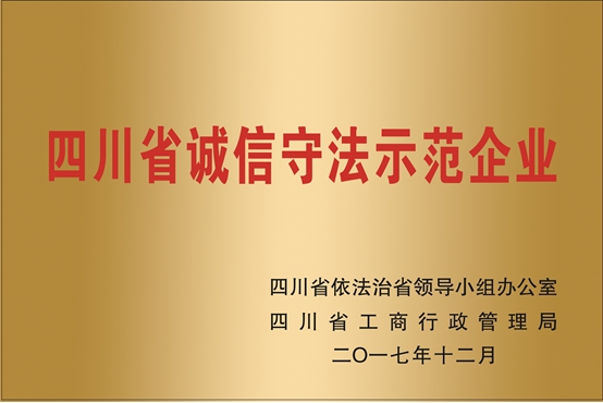 依据 “诚信守法企业"示范创建实施方案,经过省级示范创建成员单位的评审验收,四川建科公司继2016年之后,2017年再度被四川省依法治省领导小组办公室、四川省工商行政管理局授予“诚信守法示范企业”称号。