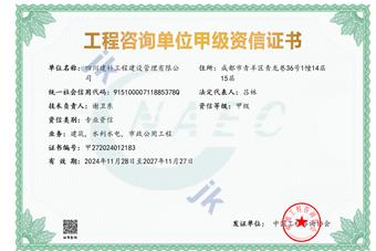 工程咨询单位甲级资信证书 (建筑 水利水电 市政公用工程)